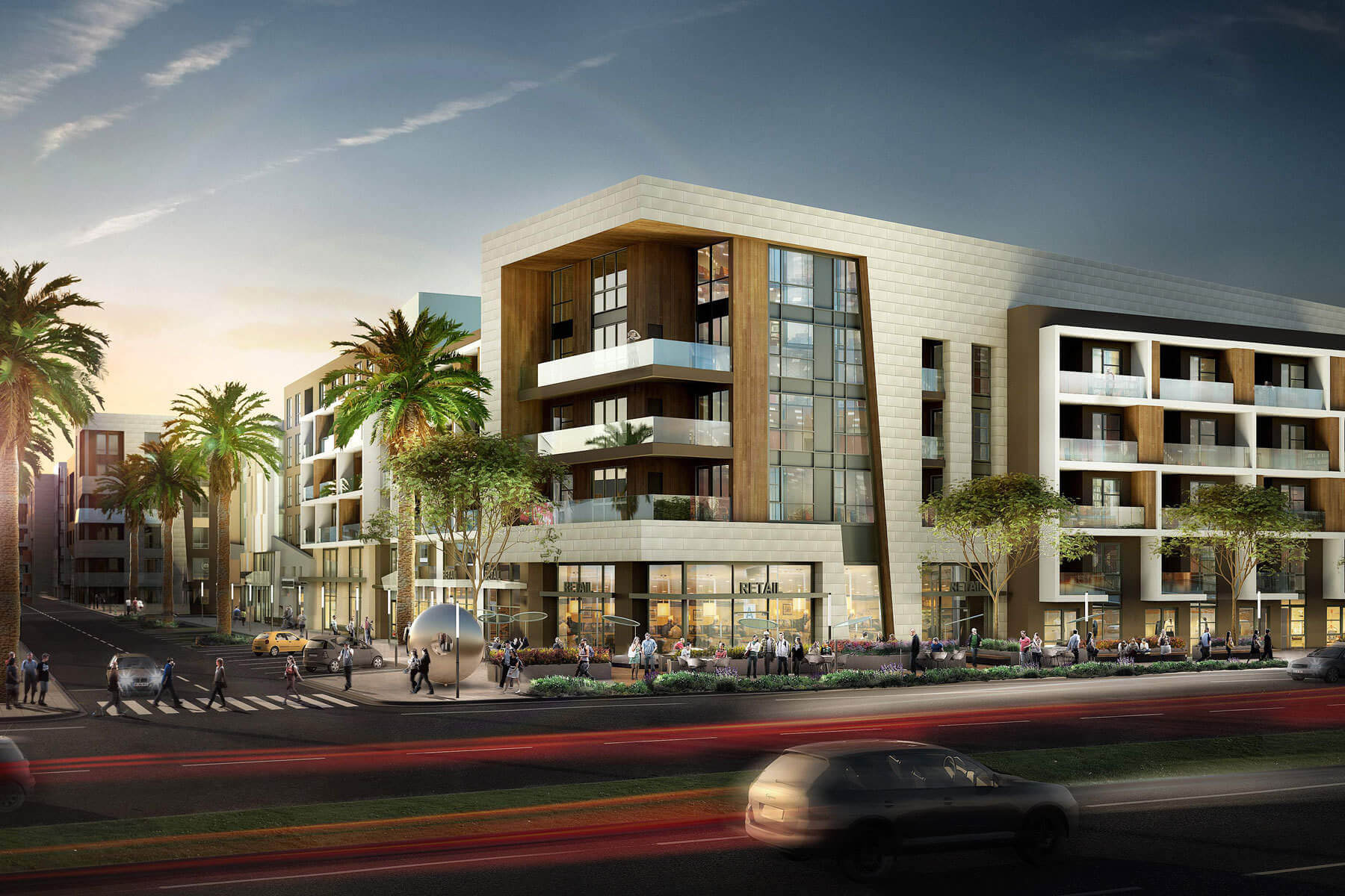 Lining the sidewalks will be a collection of shops, cafes and restaurants that create a walkable retail scene.